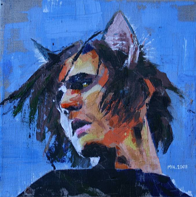 Mikey Way with cat ears ... acrylics on a nature-coloured canvas.