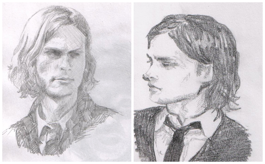 Two portraits of Spencer Reid from "Criminal Minds".