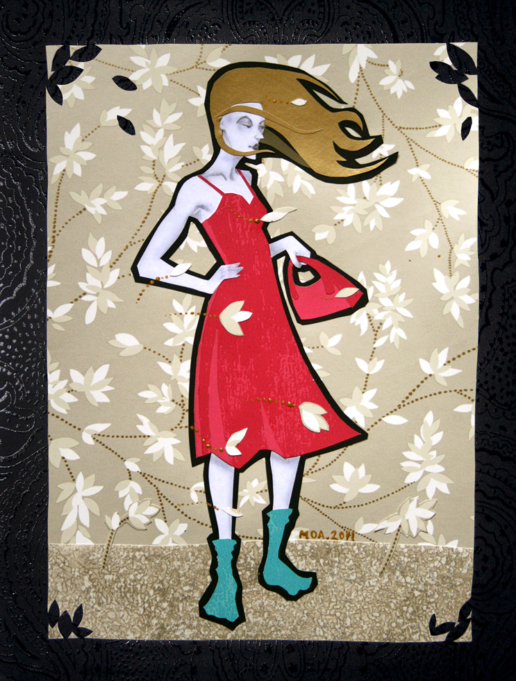 Cut-out pieces of wallpaper, mostly. Glued together.
