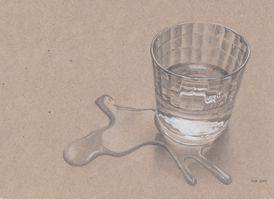 Pencil, white pencil and white gel pen on nature coloured paper.
