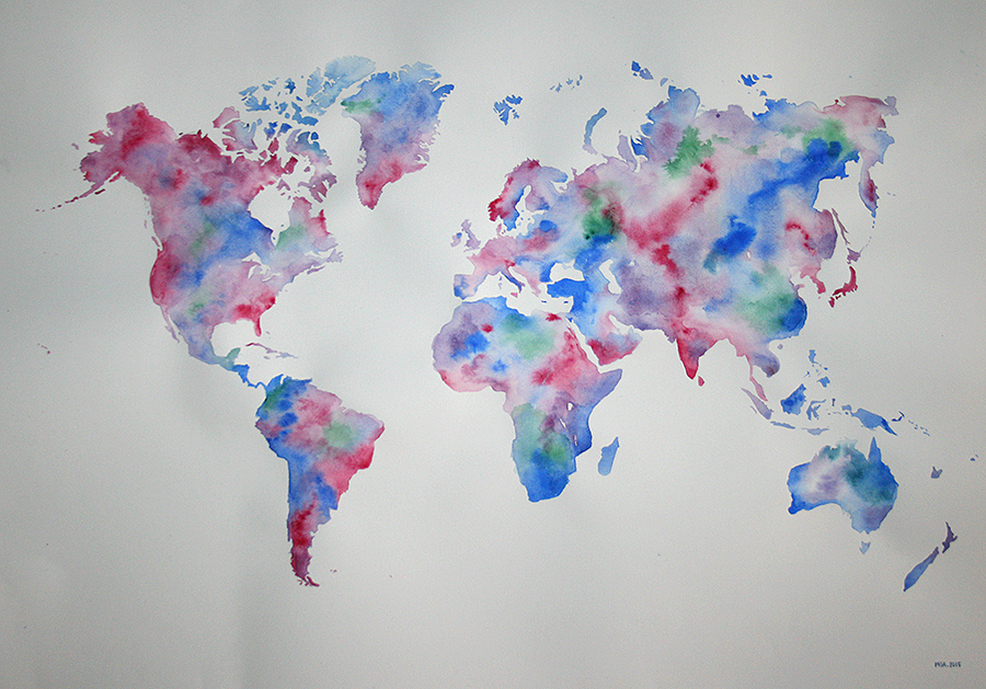 World map in water colour. Commission.