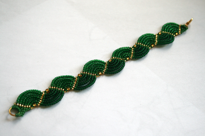 A micro macramé bracelet that I made following the instructions by KnotGypsy Designs.