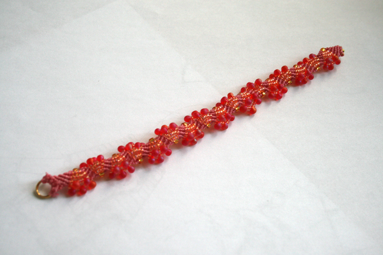 A micro macramé bracelet that I made following the instructions by KnotGypsy Designs.