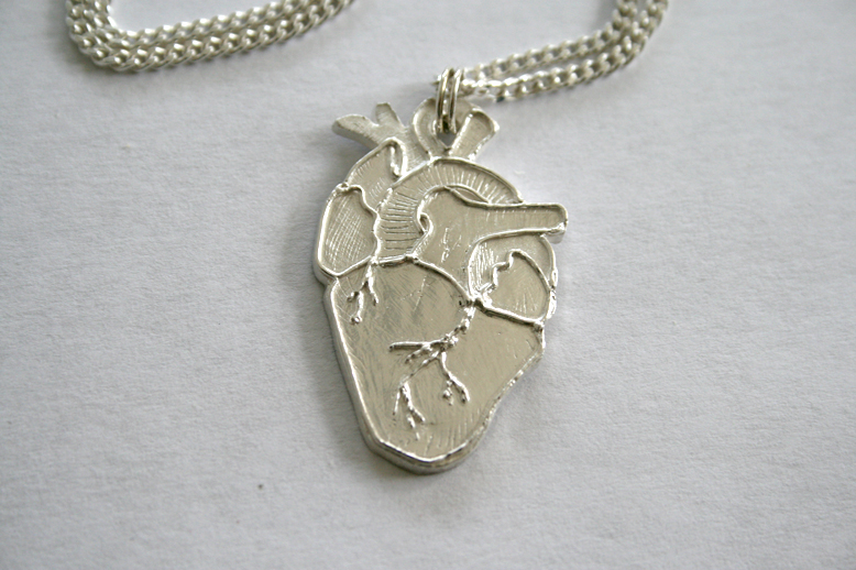 Anatomically correct (kinda) silver heart pendant made with silver clay.